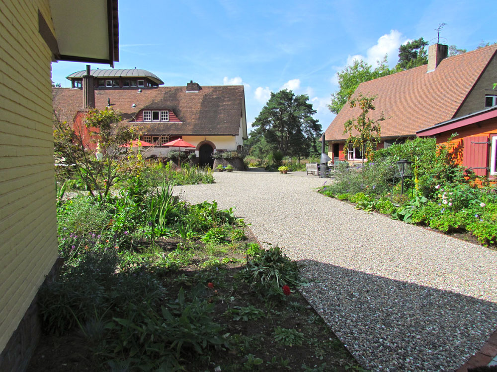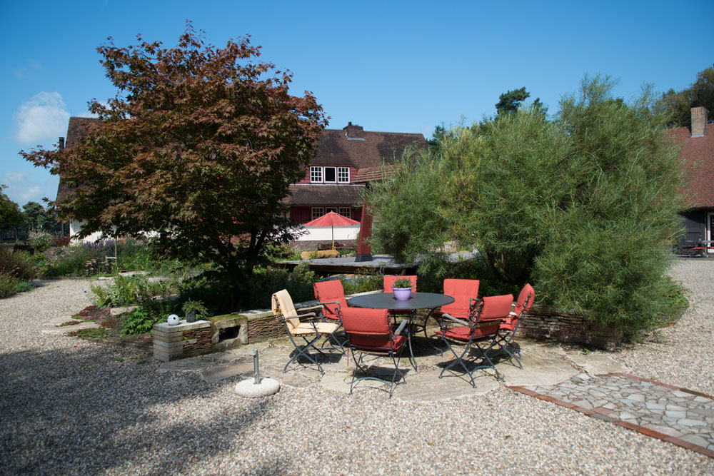 De toegangsweg tot het erf voert tussen het Slaaphuis en de Schuur door als ware het een poort en eindigt recht tegenover de voordeur van het Woonhuis. Samen met Werkhuis en Slaaphuis omarmen de gebouwen in een grote U een brinkachtige ruimte. In het midden ligt 'de Pudding', een opgehoogde border boven de waterzuiveringkelder met daar bovenop een klokkenstoel: het centrale punt van 't Kluenven. Deze Brink is de buitenkamer waar het op verschillende terrassen uitstekend toeven is voor kleine en grote groepen.