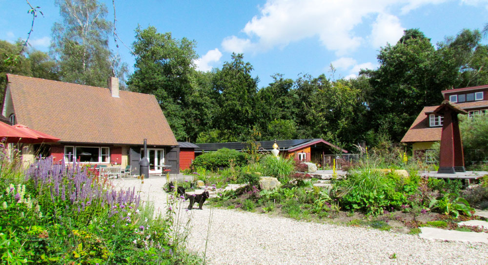 Op een buitenplaats is een grote schuur onontbeerlijk voor al het benodigde materieel voor onderhoud op het terrein en voor opslag van de tientallen kubieke meters brandhout die elk jaar verstookt worden. In de jaren 50 is de oorspronkelijke schuur met een lessenaarsdak aangebouwd tegen de bosrand van grove dennen. In de loop der decennia zijn steeds meer dennen omgewaaid, waardoor het gebouw zijn architectonische logica verloor en detoneerde in het complex. In 2009 is het lessenaarsdak doorgetrokken tot een zadeldak dat door zijn lage dakeinden beter past in de omgeving. Ook is zo een grote overdekte ruimte ontstaan waaronder 'een nat blok' met toiletten en douches en volop ruimte om bij slecht weer buitenactiviteiten toch door te kunnen laten gaan. Sinds 2000 is er een Slaapzaal met vier stapelbedden voor acht personen, die in 2014 volledig is geïsoleerd en voorzien van vloerverwarming, resp. koeling in de zomer.